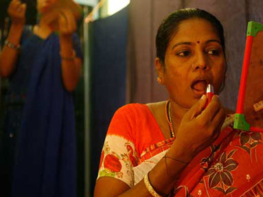 Actors preparing to perform at the Government Hospital of Thoracic Medicine in Tambaram, India. (Photo by Gideon Mendel)
