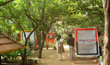 Better described as a moving event or “happening” than an exhibition, ArtMoves was a fully portable, arts-based AIDS intervention conveyed and displayed on retrofitted auto-rickshaws or other local conveyances.