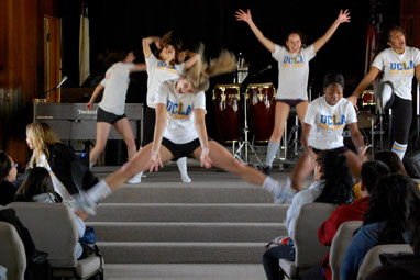 The 2010 – 2011 UCLA Sex Squad in action during a riveting performance at a Los Angeles high school.