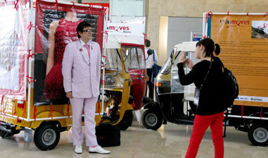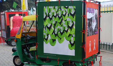 One of the auto-rickshaws was adorned with pictures of Thukral & Tagra’s HIV flip-flops.