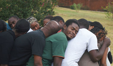 MAKE ART/STOP AIDS brings together students, artists, and local people living with HIV to create performances focusing on HIV/AIDS and stigma-reduction. This theater exercise encourages physical contact as a way to promote group bonding.